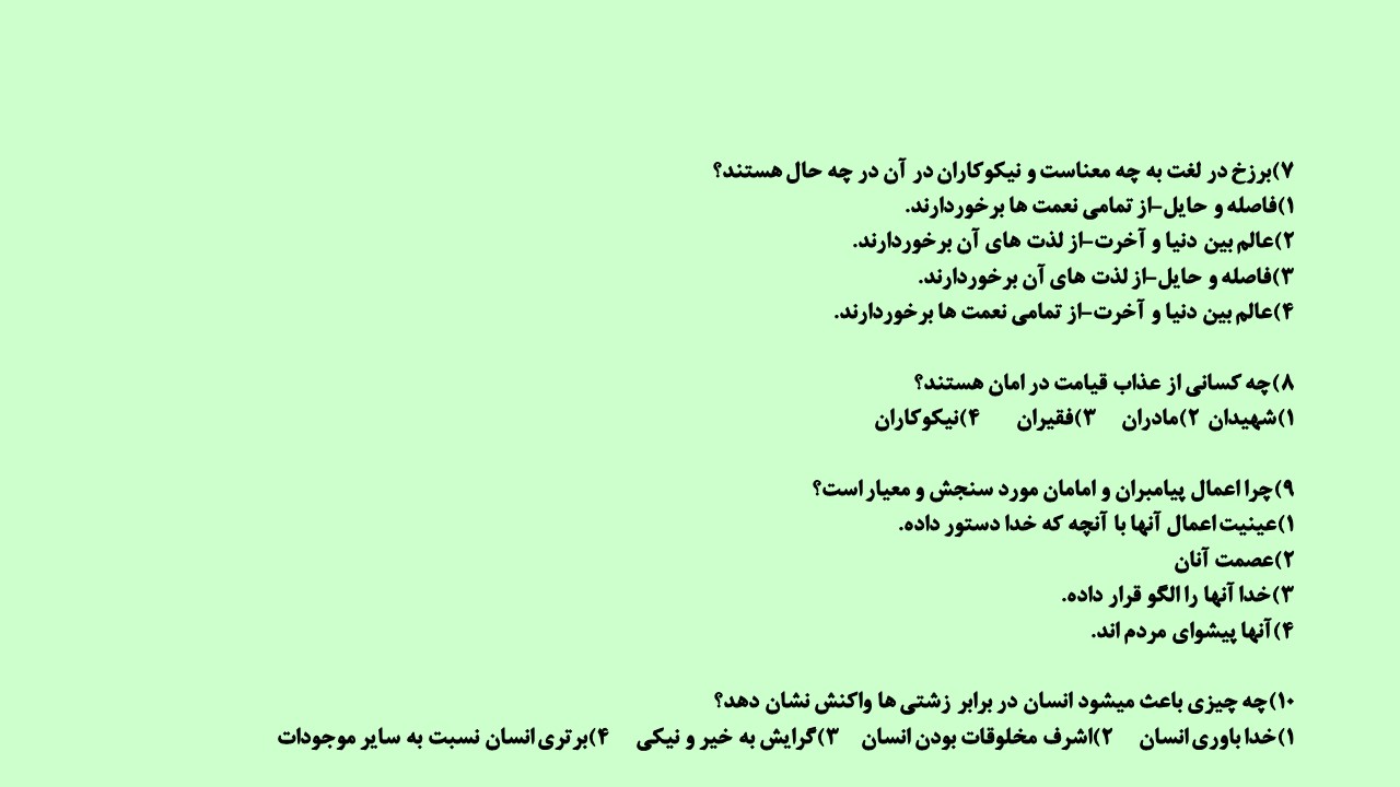 در این مطلب قصد داریم سوالات درس یک تا هفت دینی دهم را با هم مطالعه و بررسی کنیم .