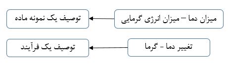•دما و انرژی گرمایی هر دو برای توضیف یک نمونه ماده به کار می روند، ولی گرما از ویژگی های یک نمونه ماده نیست. تغییر دما و گرما هر دو، برای توصیف یک فرآیند به کار می روند.