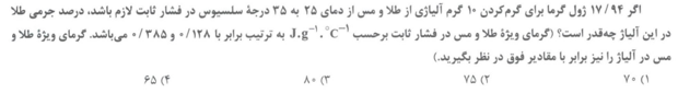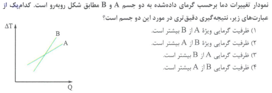نکته: ظرفیت گرمایی یک ماده در دما و فشار ثابت به نوع ماده و مقدار آن بستگی دارد. بنابراین هر چه جرم جسمی بیش تر باشد، ظرفیت گرمایی آن نیز بیشتر است.