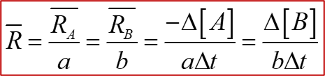 سرعت واکنش: اگر سرعت تولید یا مصرف هر یک از مواد شرکت کننده در واکنش را بر ضریب استوکیومتری آن ماده تقسیم کنیم، سرعت متوسط واکنش حاصل می شود.