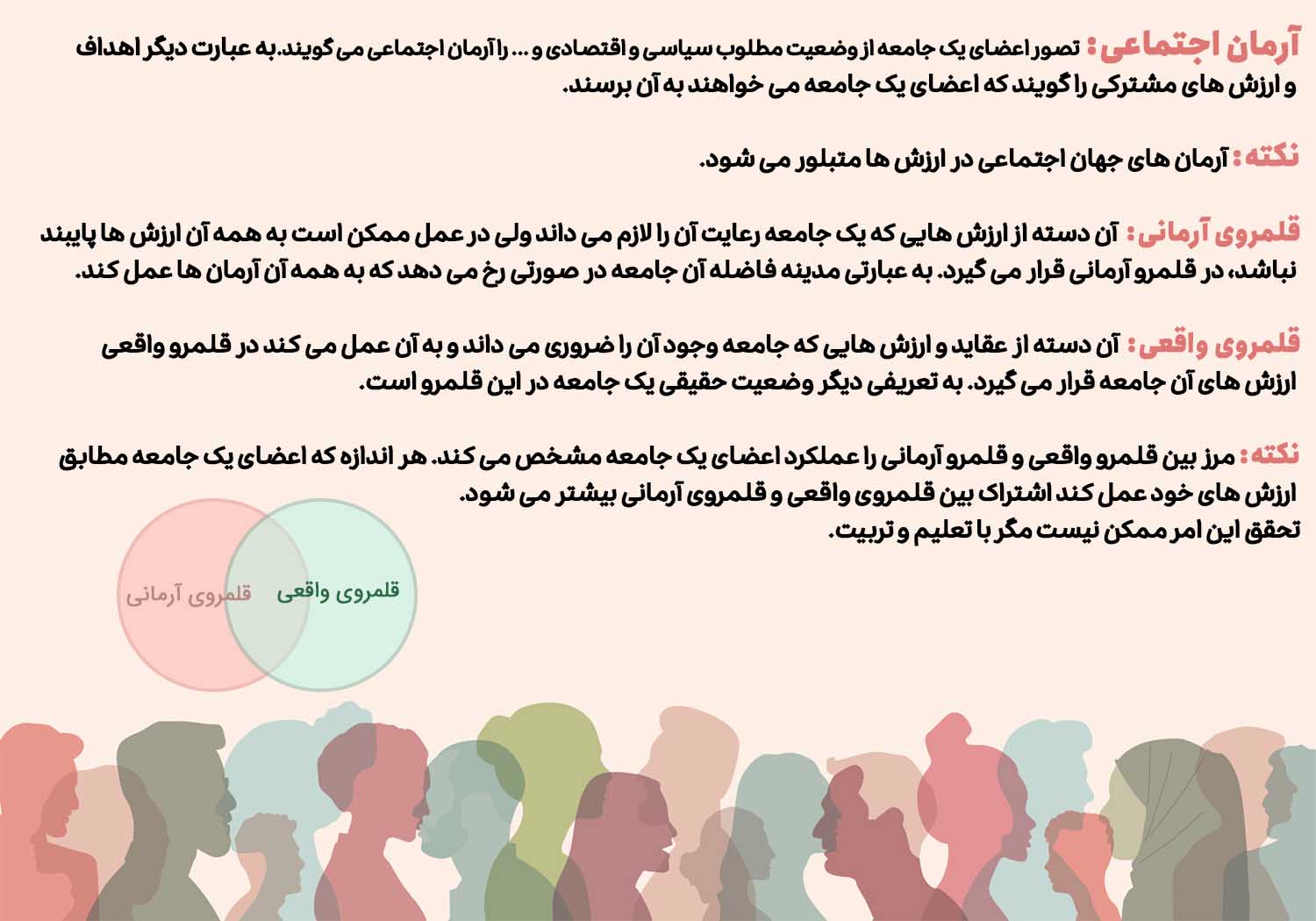 مورد اول به قلمروی آرمانی جهان اجتماعی و مورد دوم به قلمروی واقعی آن اشاره دارد.