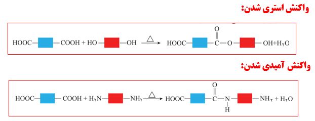 ب) به واکنش دهنده ها در واکنش پلیمری شدن، تک پار می گویند که خواص آن ها با فرآوردهء واکنش، متفاوت است.