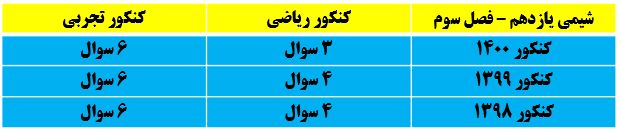 بودجه بندی فصل سوم شیمی 2 در کنکور سال های اخیر