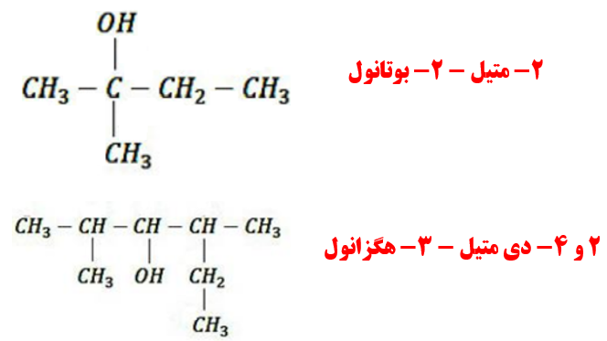 پ – برای نوشتن نام ابتدا شماره و نام شاخه، بعد شماره کربنی که عامل الکلی روی آن قرار دارد را نوشته و در پایان نام زنجیر اصلی را با پسوند «ول» می نویسیم.