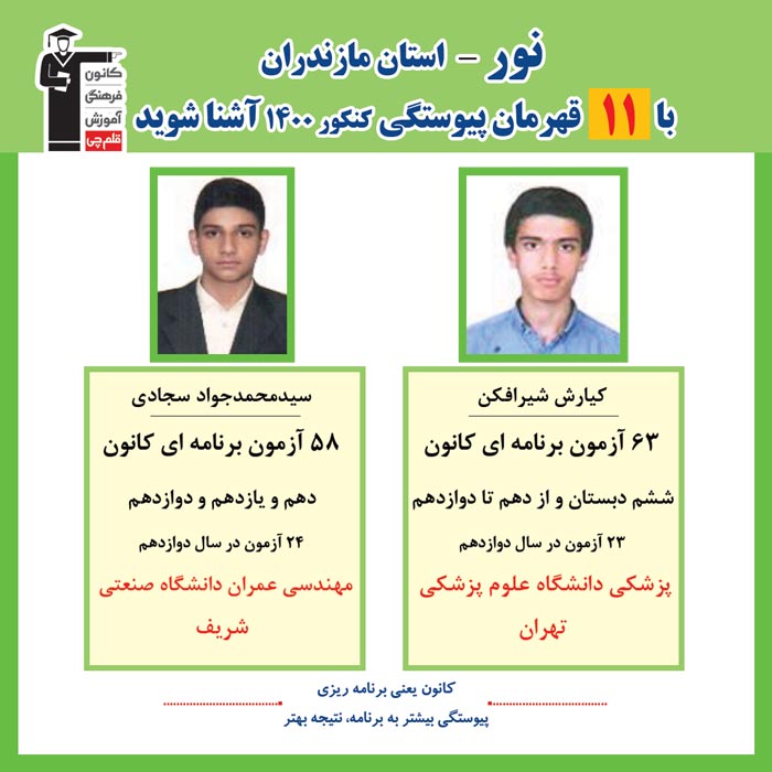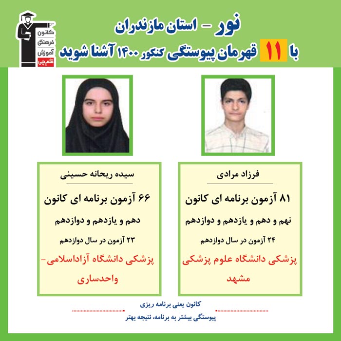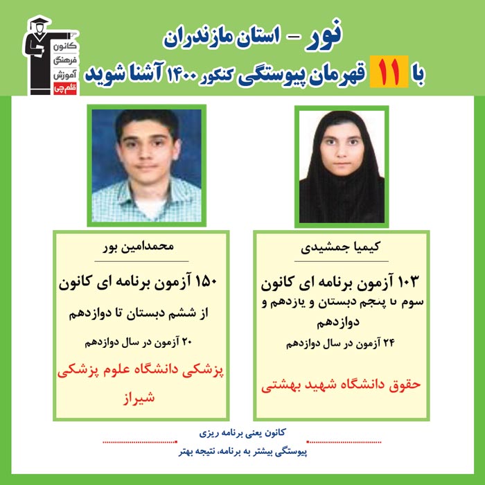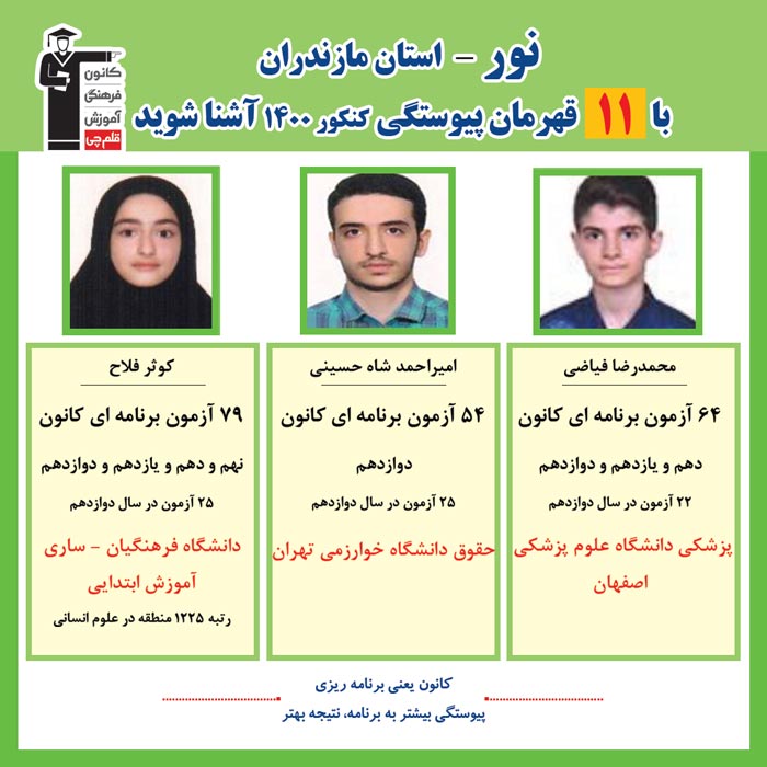 با قهرمانان پیوستگی شهر نور درکنکور 1400 آشنا شوید