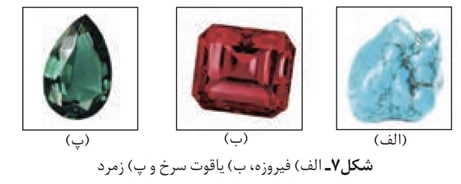 رنگ سنگ های زیر به علت وجود یون های فلزات واسطه در آنها میباشد.(رنگها مهم اند)