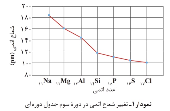 در هر دوره از چپ به راست و در هر گروه از پایین به بالا از شعاع اتمی کاسته میشود.
