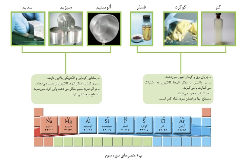 در هر دوره از چپ به راست از خواص فلزی کاسته شده و خواص نافلزی افزایش میابد.