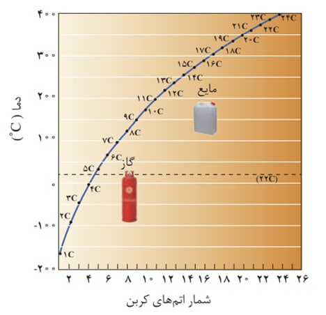 همچنین در دمای۲۲ درجه سانتی گراد آلکان های ۱ تا ۴ کربنه گاز هستند.