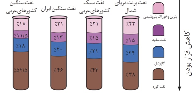 هر چه درصد اجزای سبک نفت خام بیشتر شود گران تر خواهد شد.