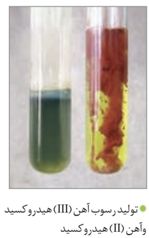 Fe(OH)3 : قهوه ای مایل به قرمز