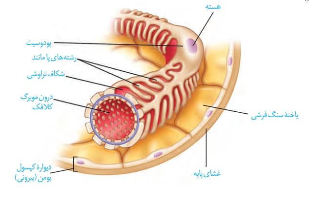 ۳) توسط یاخته های دارای ریزیرز انجام می شود - شکاف های بین رشته های پامانند پودوسیت نقش اصلی ندارند.