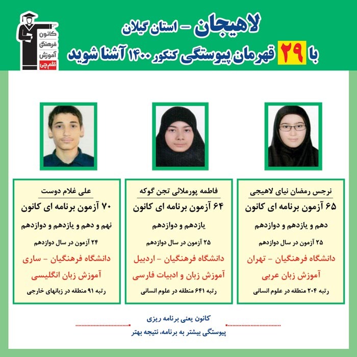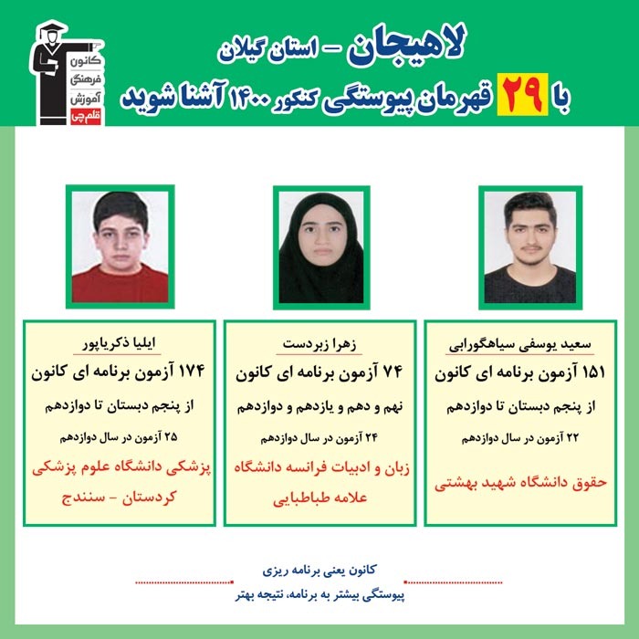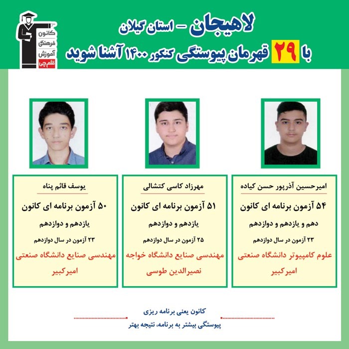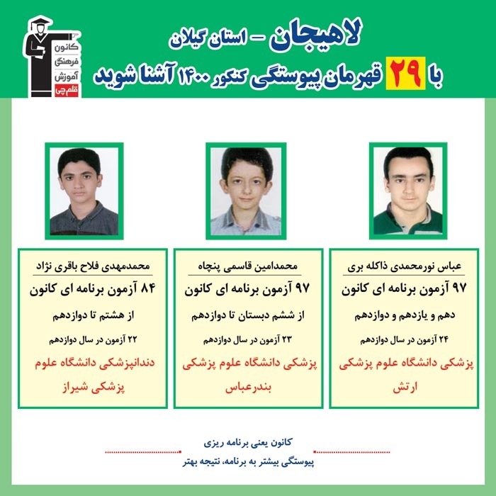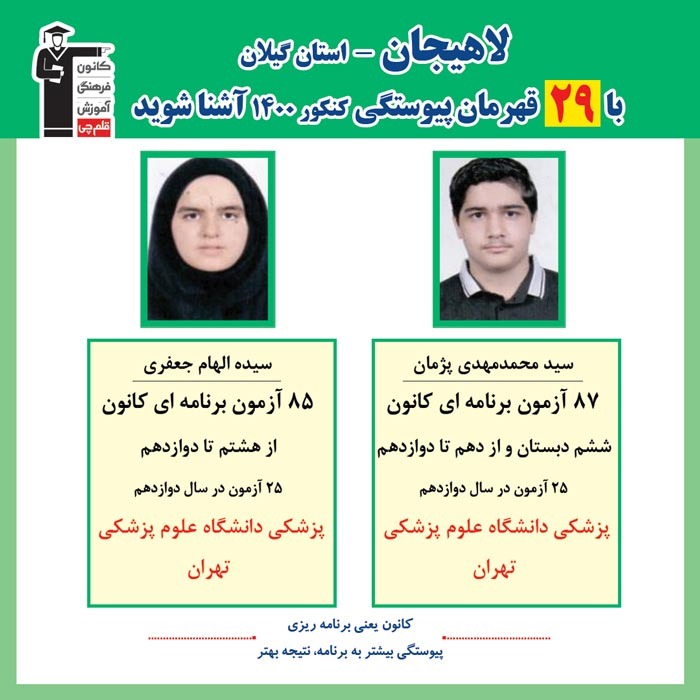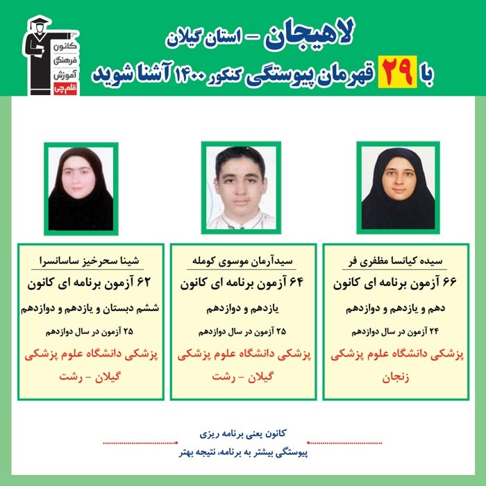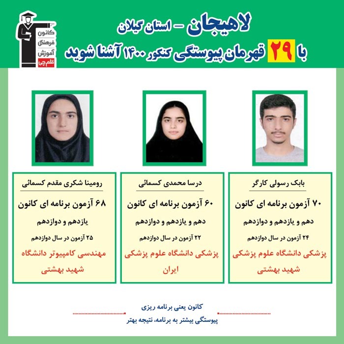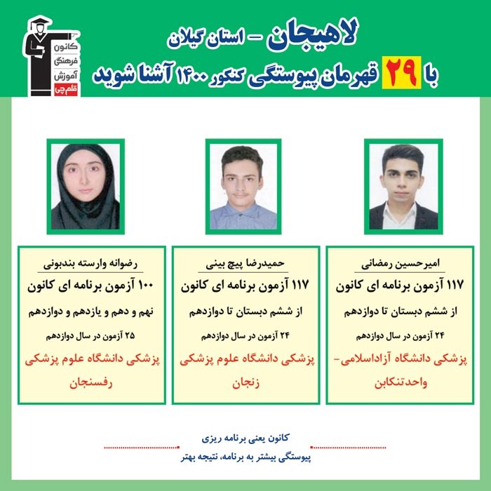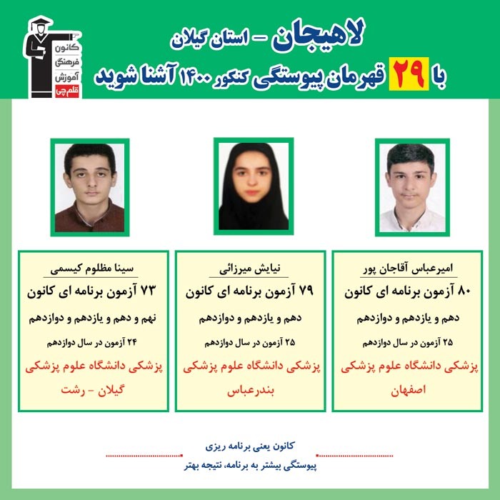 با 29 نفر قهرمانان پیوستگی لاهیجان درکنکور 1400 آشنا شوید