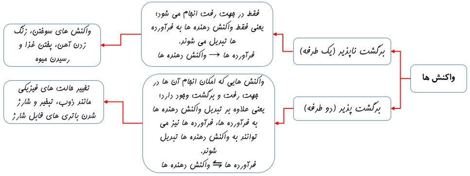 7- واکنش سوختن یکی از واکنش های مهمی است که در آن یک ماده با اکسیژن به سرعت واکنش می دهد و بخشی از انرژی شیمیایی آن به صورت گرما و نور آزاد می شود؛ به عنوان مثال زغال سنگ در حضور اکسیژن می سوزد و افزون بر تولید گازهای SO2 و و CO2 بخار آب، مقدار زیادی انرژی آزاد می کند.