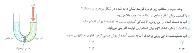 اسمز معکوس: مولکول های آب با عبور از غشاء از محلول غلیظ تر به سمت محلول رقیق تر می روند.