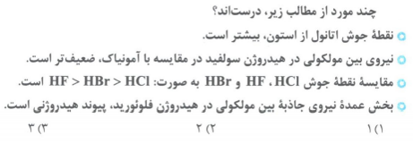 نکته: به طور کلی هر چه نیرو های بین مولکولی در ترکیبی قوی تر باشد، ترکیب مورد نظر آسان تر از گاز به مایع تبدیل می شود.
