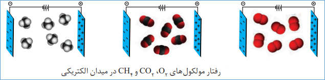 مولکول های سازندۀ ترکیب هایی مانند گاز اکسیژن O2، کربن دی اکسید CO2 و متان CH4 در میدان الکتریکی جهت گیری نمی کنند چنین مولکول هایی، ناقطبی نامیده میشوند.