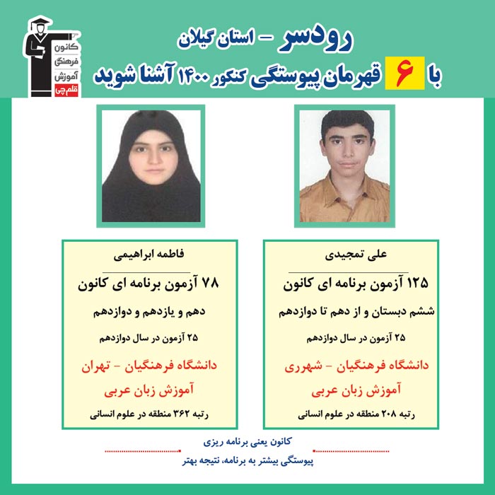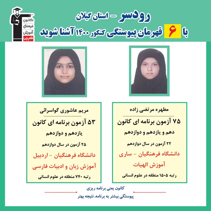 با 6 نفر قهرمانان پیوستگی رودسر درکنکور 1400 آشنا شوید