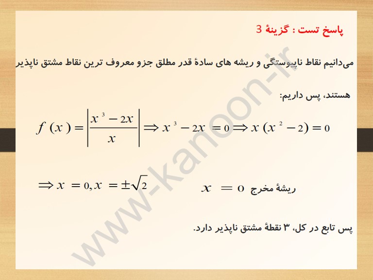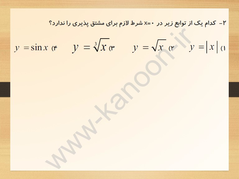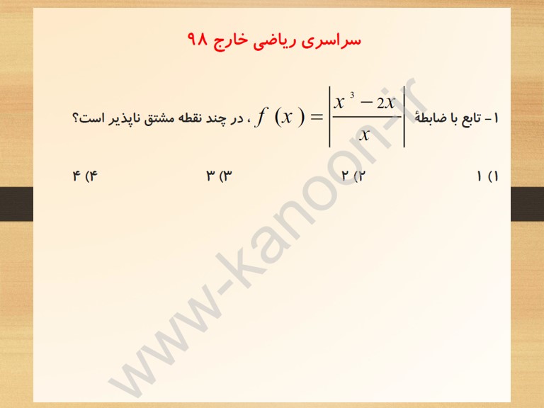 ویژگی مطلب : حل 16 تست کنکور سالهای اخیر و 10 تست کانون قلم چی پیشنهاد : هر سال در کنکور سراسری 4 الی 5 سوال به صورت مستقیم از مبحث مشتق می آید که از این 5 سوال، 3 سوال بسیار راحت و به کمک مفاهیم اولیه مشتق قابل حل است. پس به راحتی از این مبحث نگذرید. |