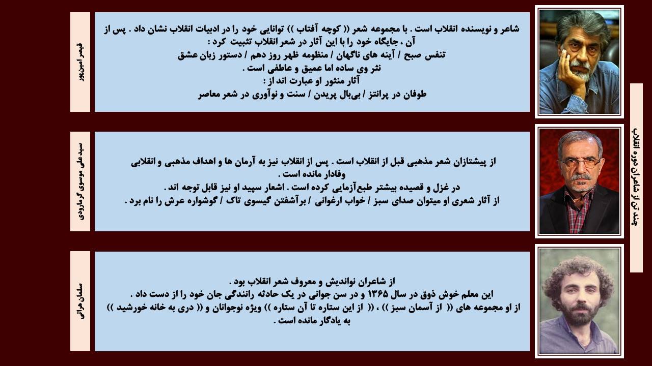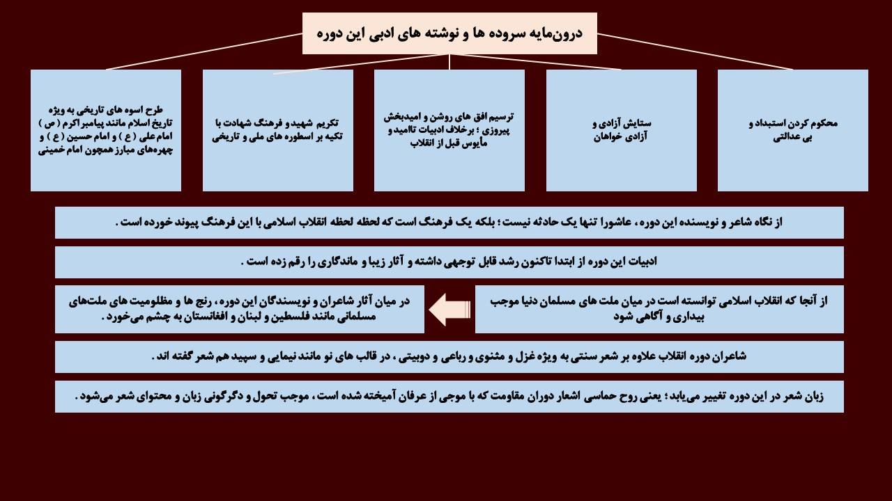 ⚪ با شکلگیری انقلاب ، شاعران ، جنبه های حماسی ، عرفانی و مذهبی نهضت اسلامی را در شعر انعکاس دادند .