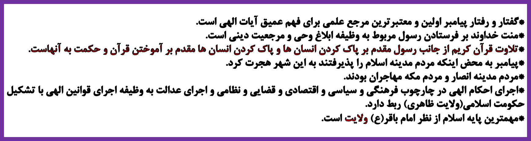 *اجرای هر قانون و پیروی از هرفرد فقط زمانی درست است که به گونه ای به قانون الهی و فرمان او برگردد.