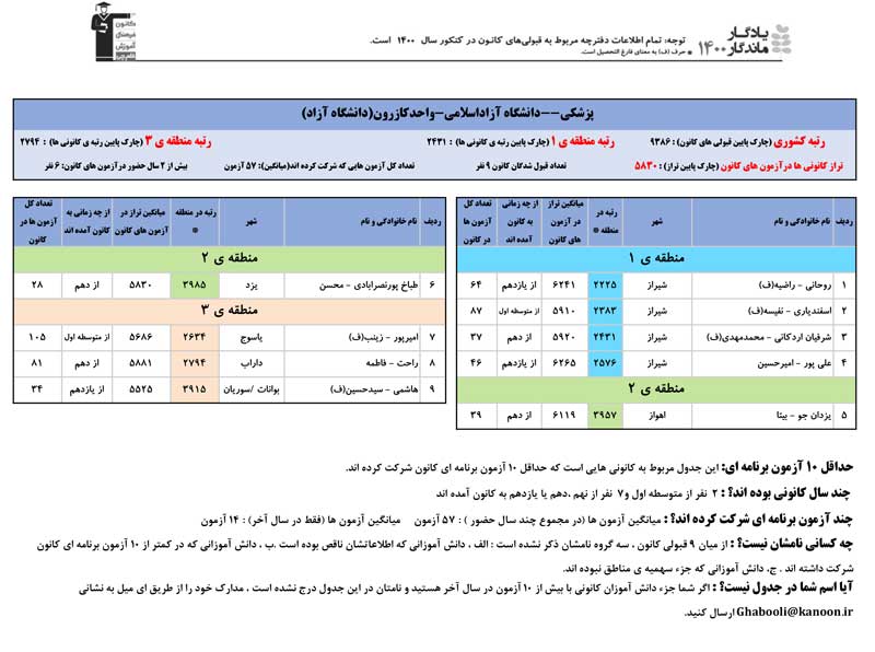 یادگار ماندگار : قبولی های کانونی دانشگاه سلمان فارسي کازرون و دانشگاه آزاداسلامي-واحدکازرون در همه رشته ها در سال 1400 را در ادامه مشاهده کنید.فایل با کیفیت قبولی های سال 1400 را در قسمت فایل های ضمیمه دانلود کنید.