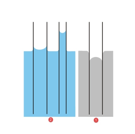 *نکته:در شکل های تشخیصی مویینگی جیوه با آب علاوه بر داخل لوله مویین به خارج آن نیز توجه کنید رفتار باید یکسان باشد یعنی آب در لوله باید به صورت مقعر قرار گیرد و از لوله بالا رفته باشد در بیرون آن نیز باید آب به لوله چسبیده و بالا برود