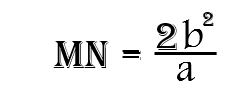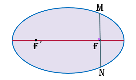 از یکی از کانون های بیضی، خطی را بر محور کانونی عمود می کنیم تا بیضی را در نقاط M و N قطع کند. پاره خط MN را وتر کانونی بیضی می نامند و طول آن از رابطه زیر محاسبه می شود: