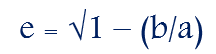 خروج از مرکز بیضی را از رابطه زیر هم قابل محاسبه است.