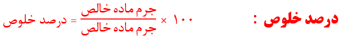 در این حالت، از ما درصد خلوص یکی از مواد ناخالص موجود در واکنش را می پرسند. در این جا با توجه به مقدار گرم خالص یکی از موادی که به ما داده است، مقدار گرم خالص مادهء مورد نظر را به دست می آوریم؛ سپس آن را در رابطهء درصد خلوص گذاشته و درصد خلوص این ماده را حساب می کنیم.