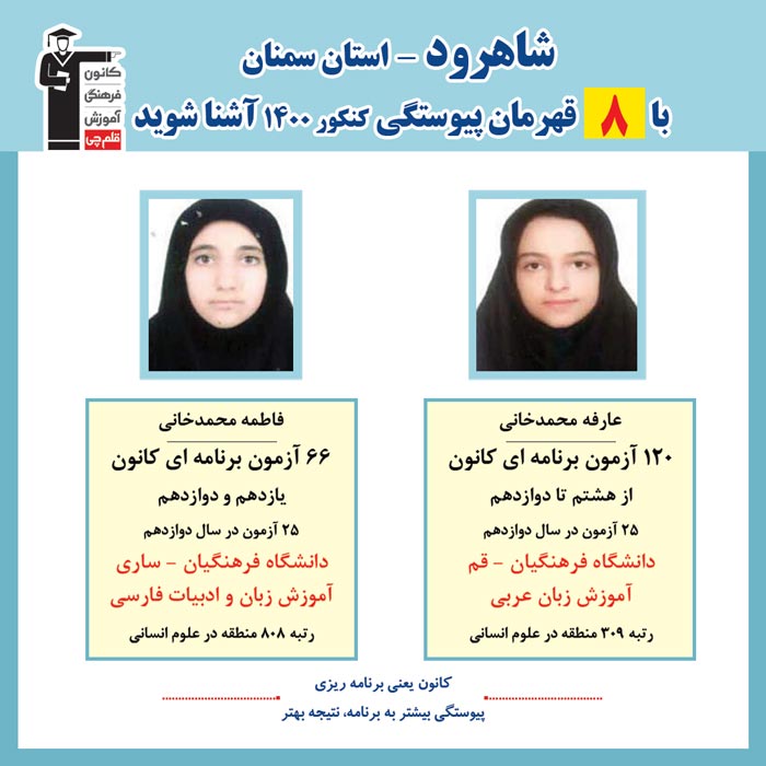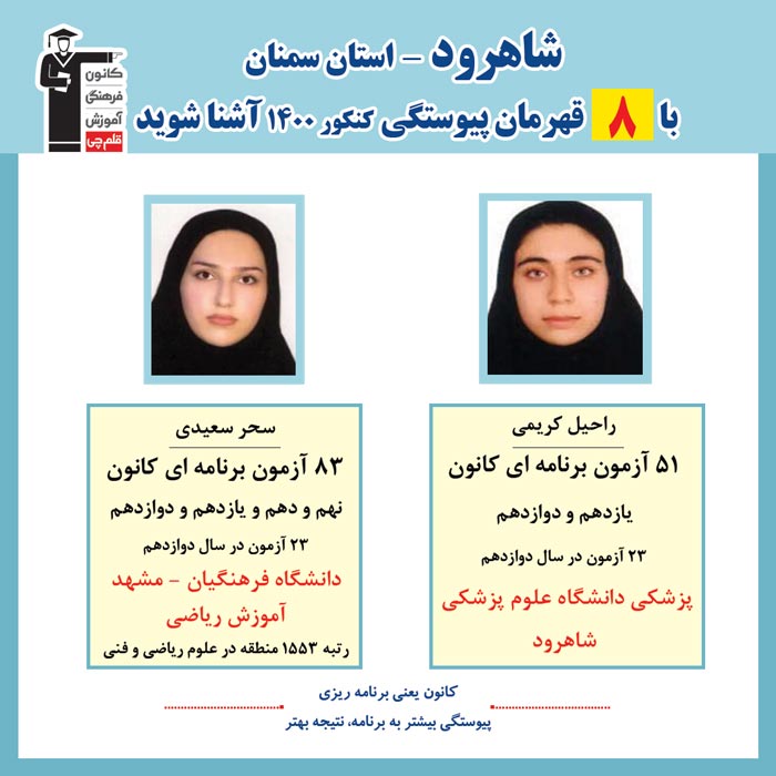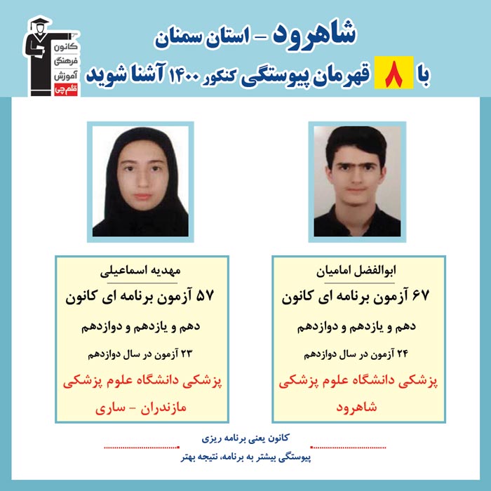 با 8 نفر قهرمانان پیوستگی شاهرود درکنکور 1400 آشنا شوید