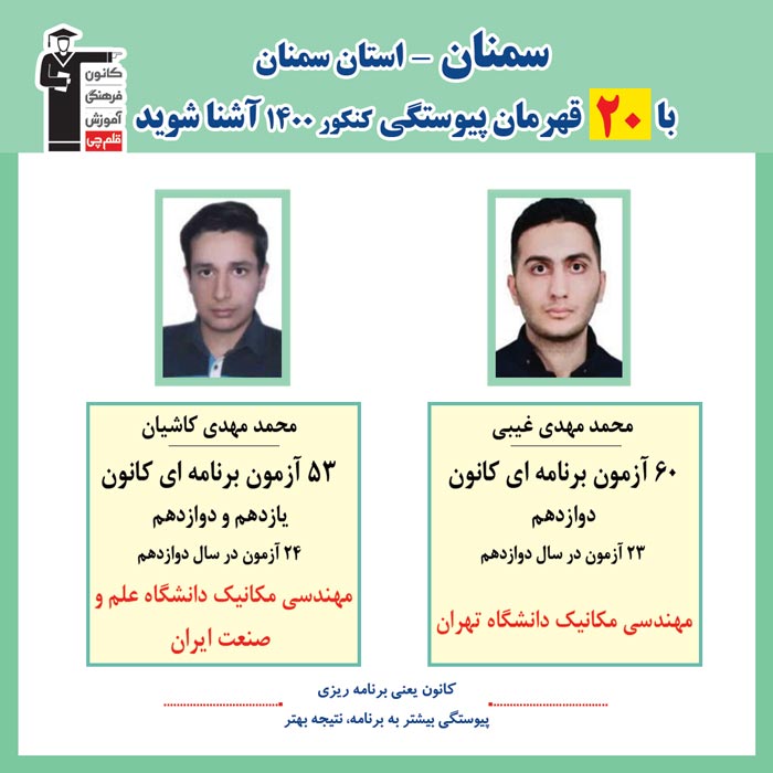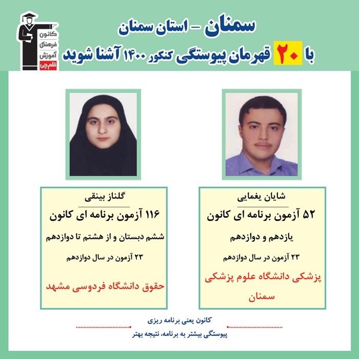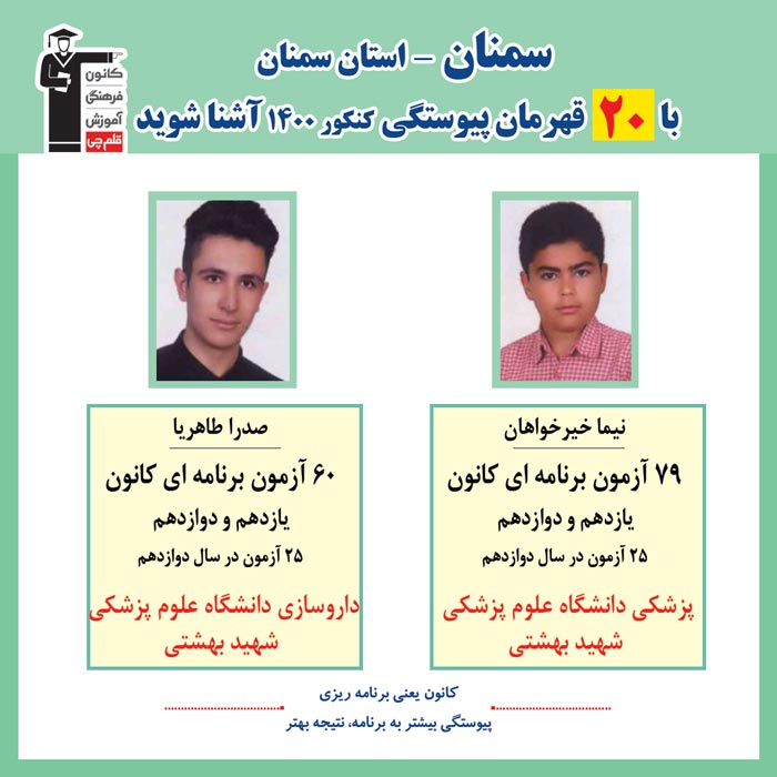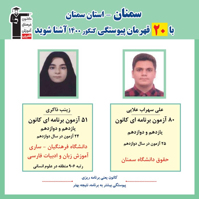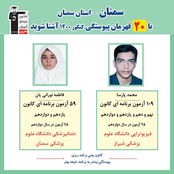 با قهرمانان پیوستگی شهر سمنان درکنکور 1400 آشنا شوید