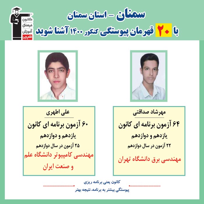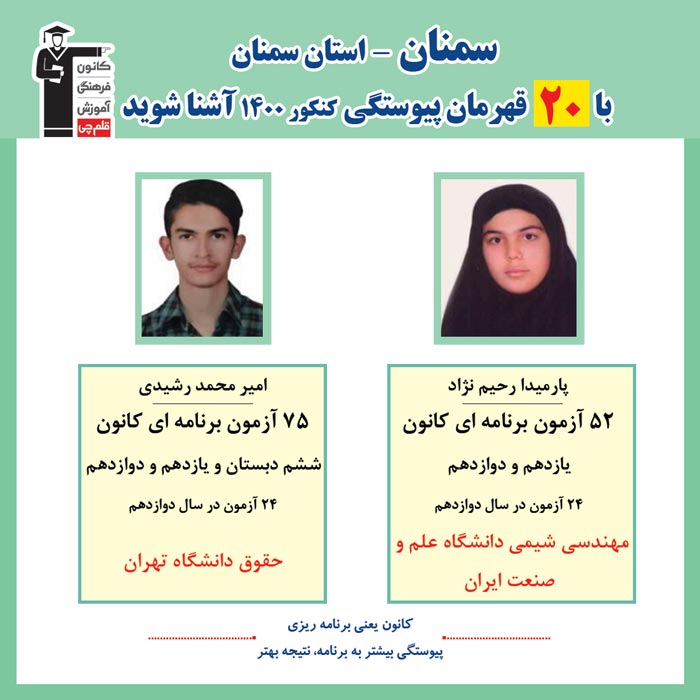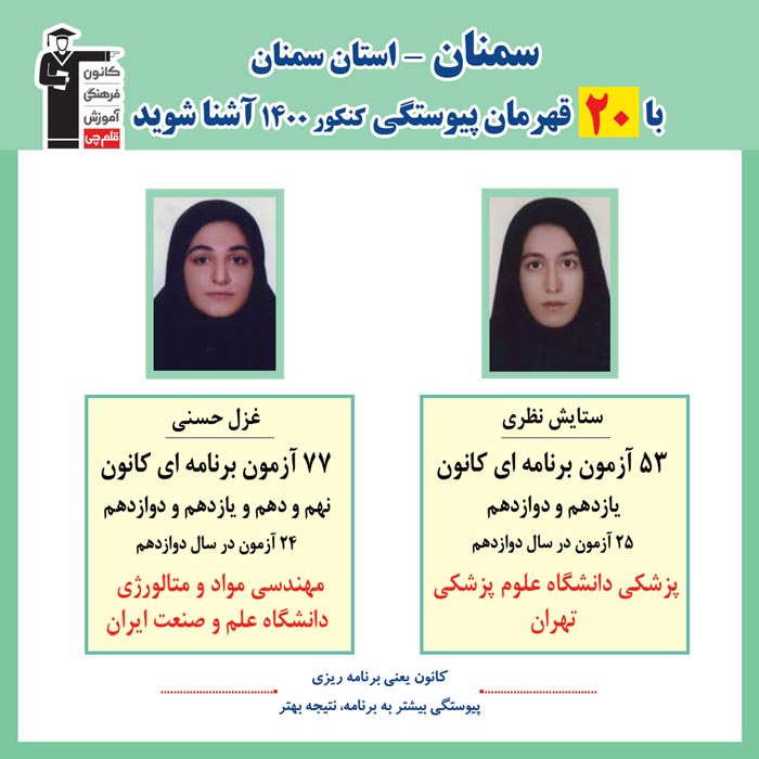 با 20 نفر قهرمانان پیوستگی سمنان درکنکور 1400 آشنا شوید