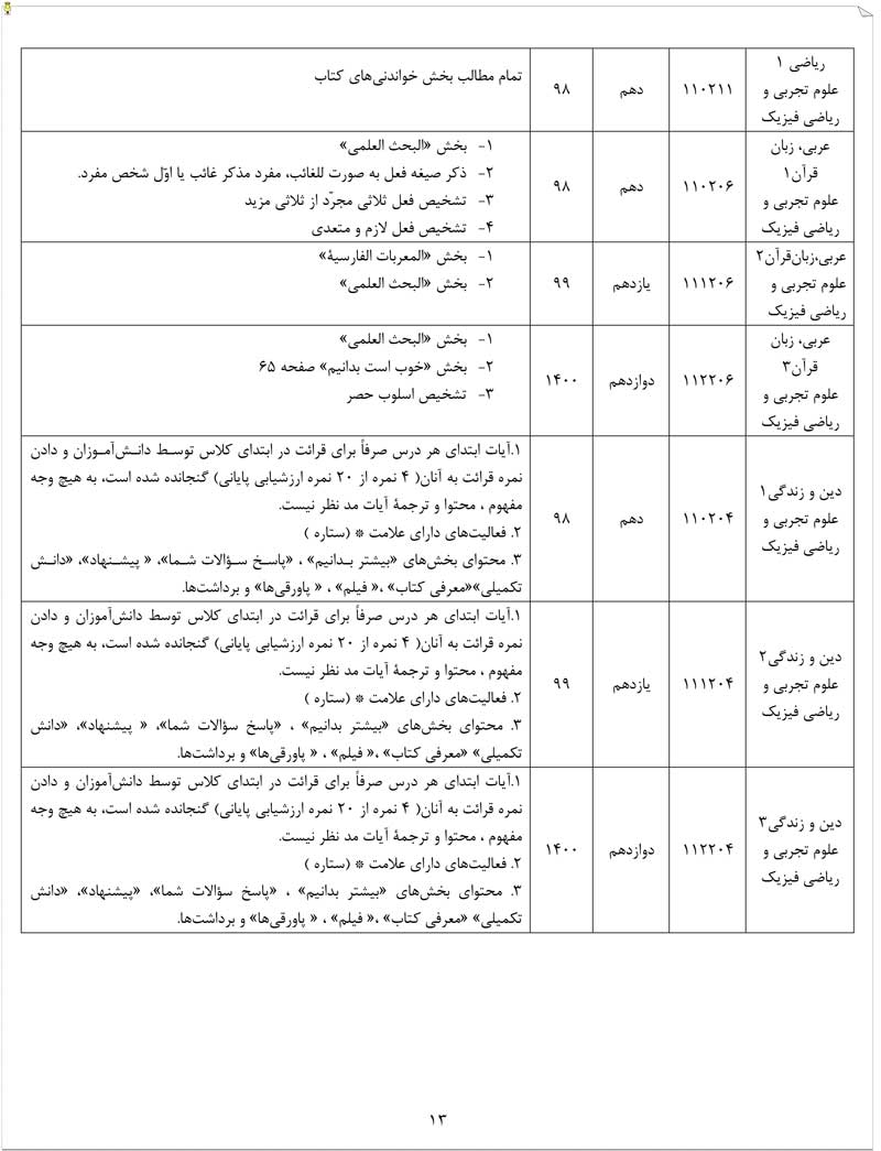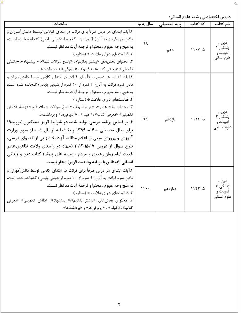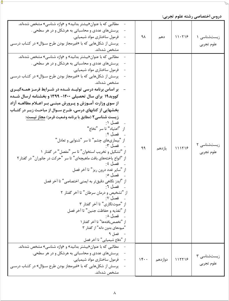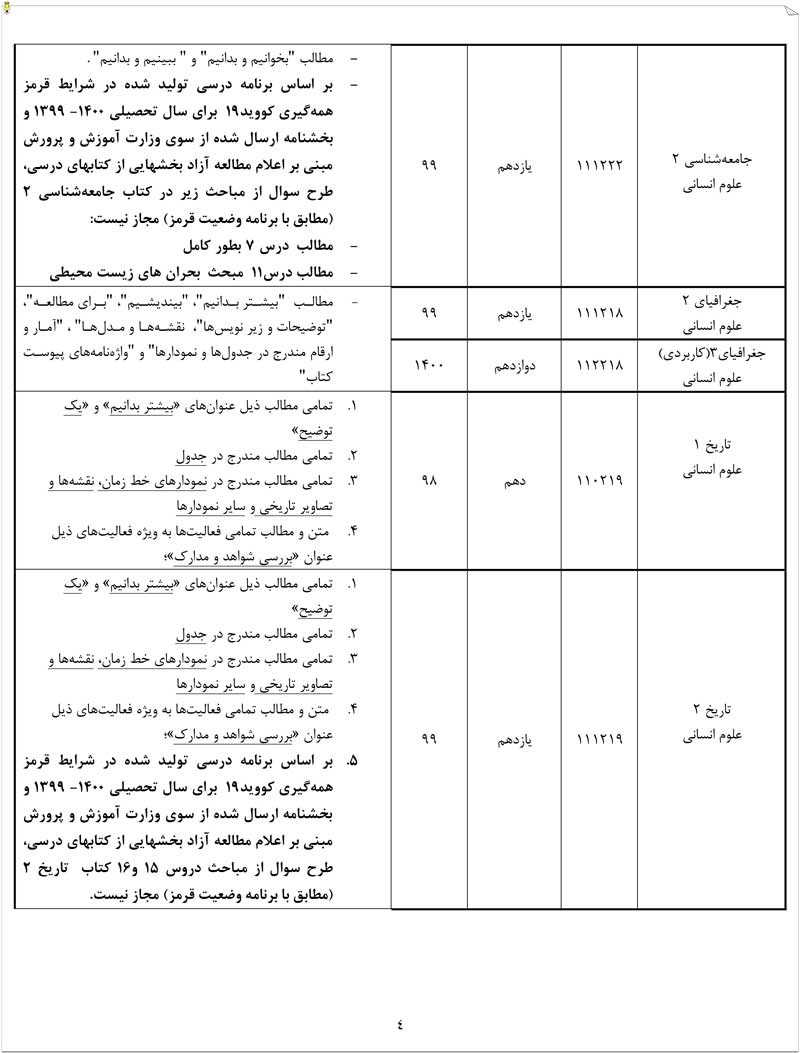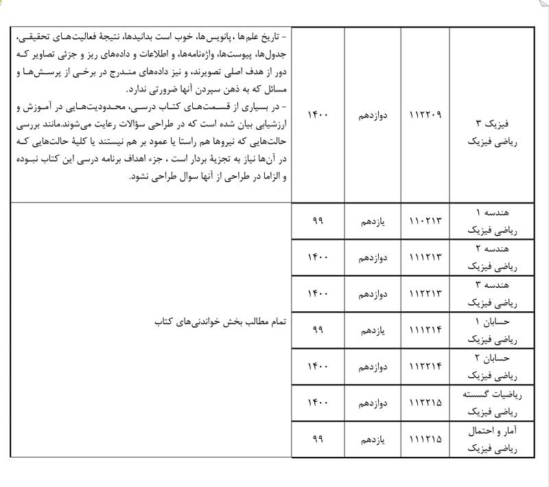 اطلاع متقاضیان آزمون سراسري سال 1401 ميرساند براساس نامه های شماره 17970/1/101 مورخ 1400/10/29 و شماره 18443 مورخ 1400/11/06 سازمان پژوهش و برنامهریزی آموزشی وزارت آموزش و پرورش، فهرست حذفیات منابع آزمون سراسری سال 1401 که از آن سؤال طرح نخواهد شد در فایل ضمیمه زیر قابل مشاهده و دریافت است.