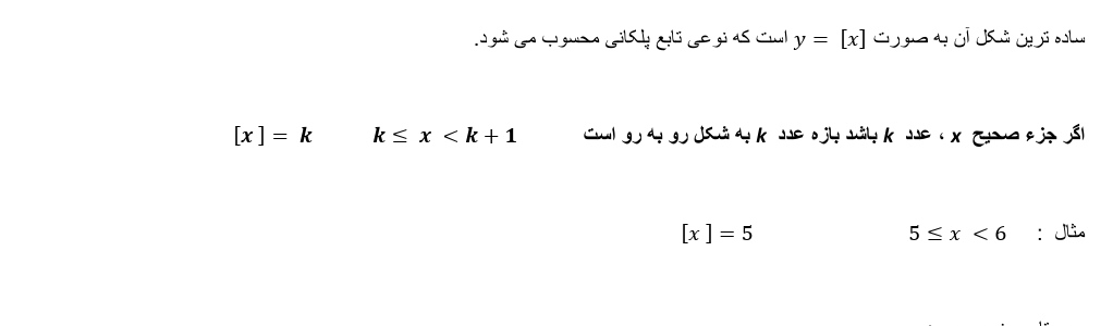 تابعی است که به هر عدد صحیح خود همان عدد را نسبت می دهد و به هر عدد بین دو عدد صحیح متوالی، عدد صحیح کوچکتر را نسبت می دهد.