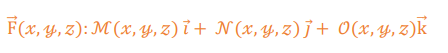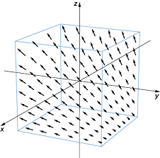 یک میدان برداری سه بعدی در مختصات کارتزین نیز به صورت زیر نمایش داده می شوند :