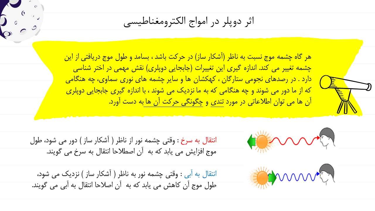 وقتی چشمه نوری به ناظر نزدیک میشود طول موج ..... و اگر چشمه نور از ناظر دور شود ..... رخ می دهد.