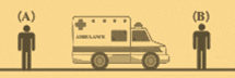 در شکل زیر یک آمبولانس ساکن ، صوتی با بسامد fs و طول موج لاندا اس تولید میکند. شنونده A با تندی ثابت به آمبولانس نزدیک میشود و شنوده B با تندی ثابت از آمبولانس دور میشود. کدام یک از گزینه های زیر درست است؟