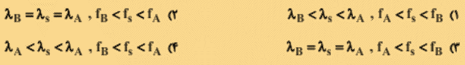 در شکل زیر آمبولانس ساکنی با بسامد fs و طول موج لاندای اس تولید میکند. اگر شنونده A با تندی ثابت به آمبولانس نزدیک شود و شنونده B با تندی ثابت از آمبولانس دور شود بسامد احساسی هر یک fَA ،fB و طول موج احساسی هر یک لاندای A و لاندای B میباشد. کدام یک از گزینه ها درست است؟