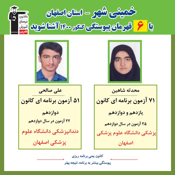 با 6 نفر قهرمانان پیوستگی خمینی شهر درکنکور 1400 آشنا شوید