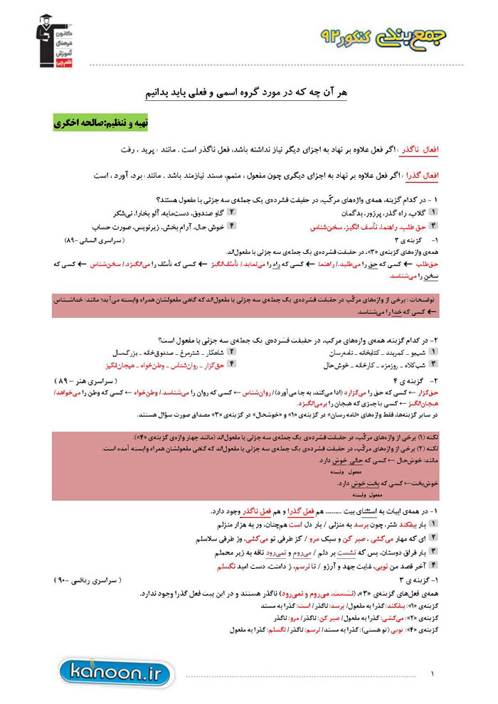 جمع بندی کنکور 92