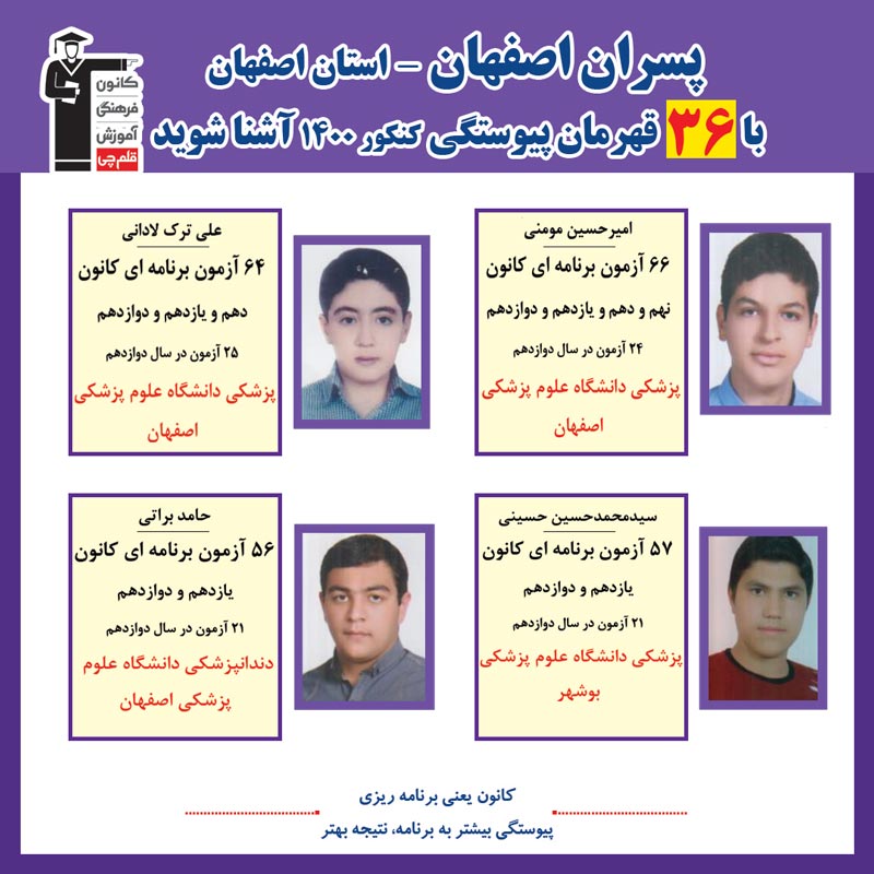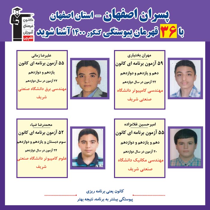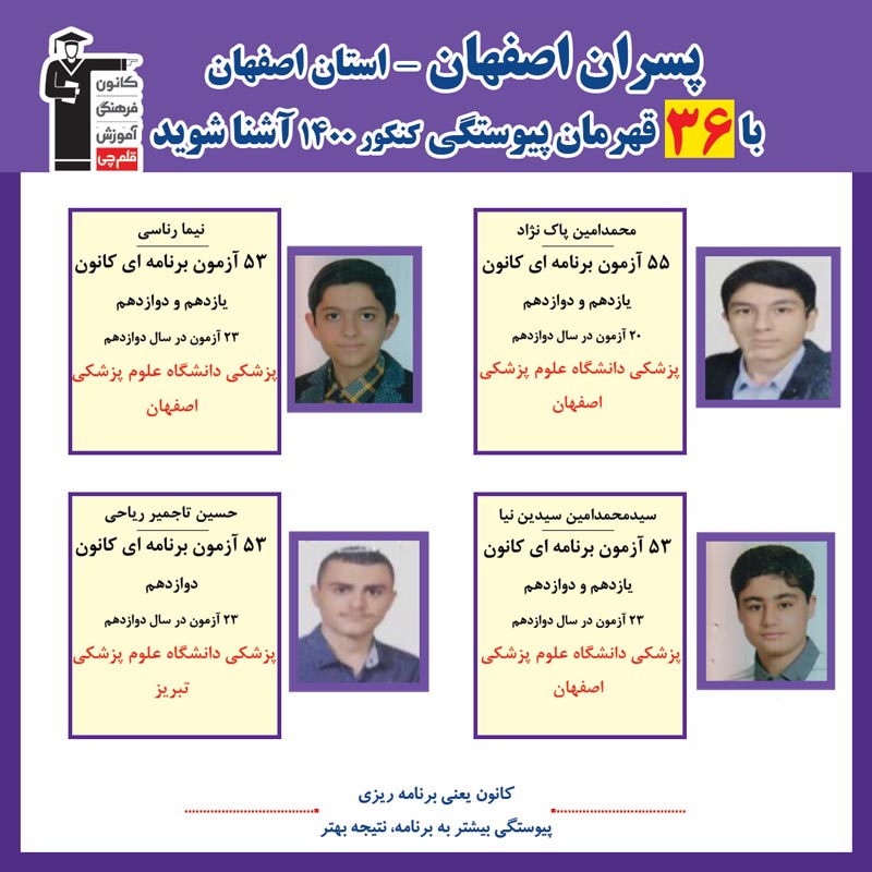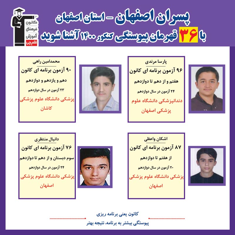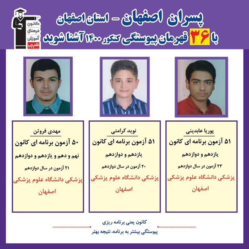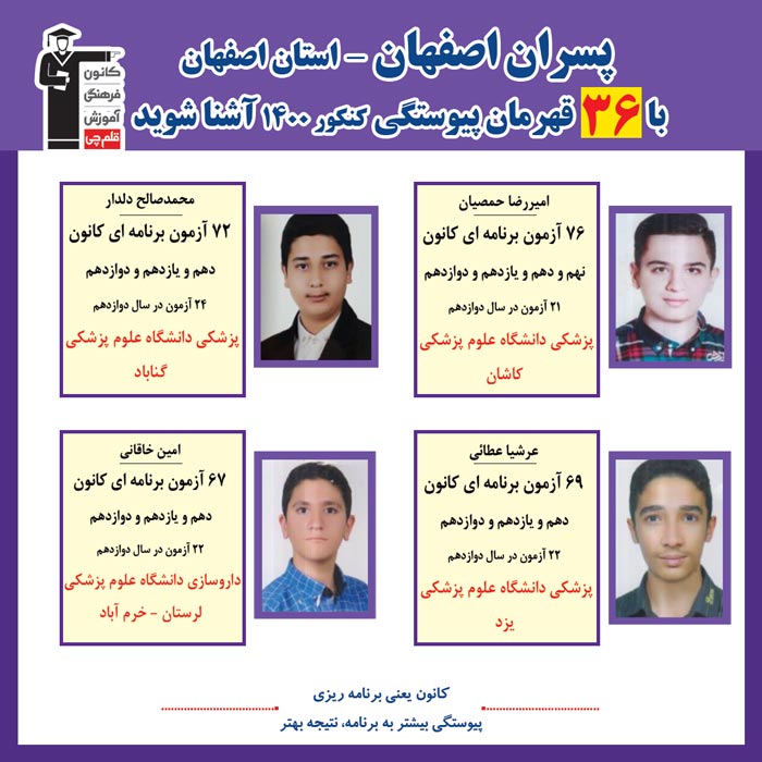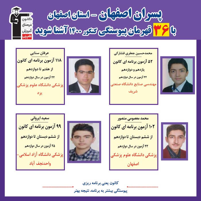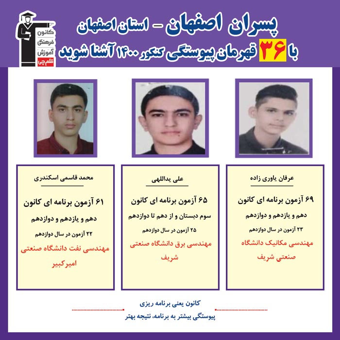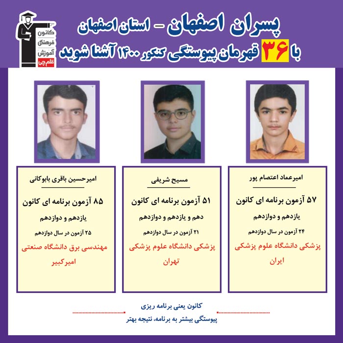 با 36 نفر قهرمانان پیوستگی پسران اصفهان درکنکور 1400 آشنا شوید