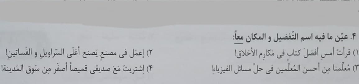 ۲-برای مقایسه بین دو یا چند چیز مثال : هذا الجبل اعلَی جبل فی ایران