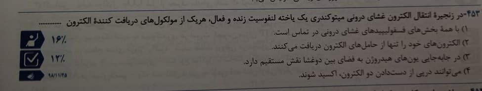 ب) 2 مولکول داخل غشایی هم وجود دارند که هر دو هم الکترون را می گیرند و هم الکترون را از دست می دهند. هر دوی آنها الکترون های حاصل از اکسایش FADH2 و NADHرا دریافت می کنند.