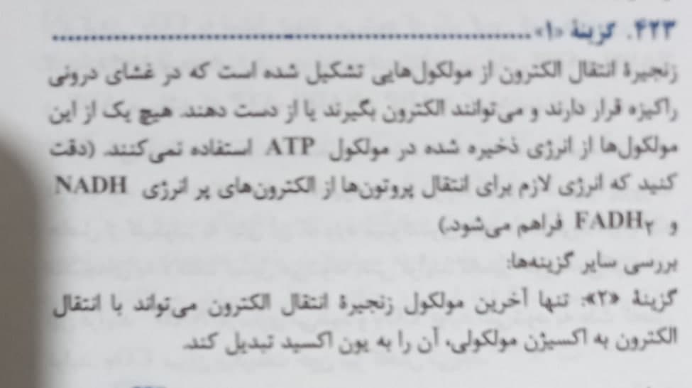 درسنامه زیست دوازدهم مبحث زنجیره انتقال الکترون