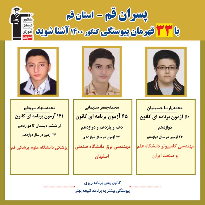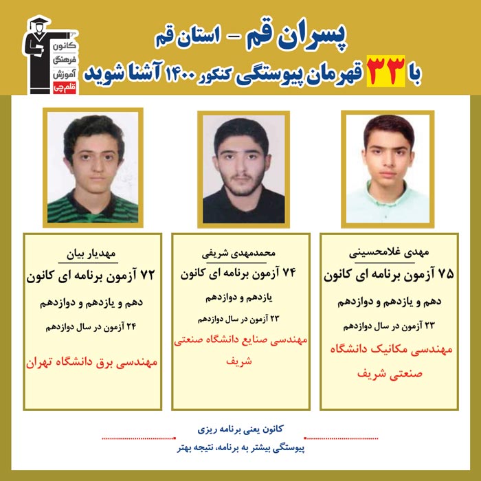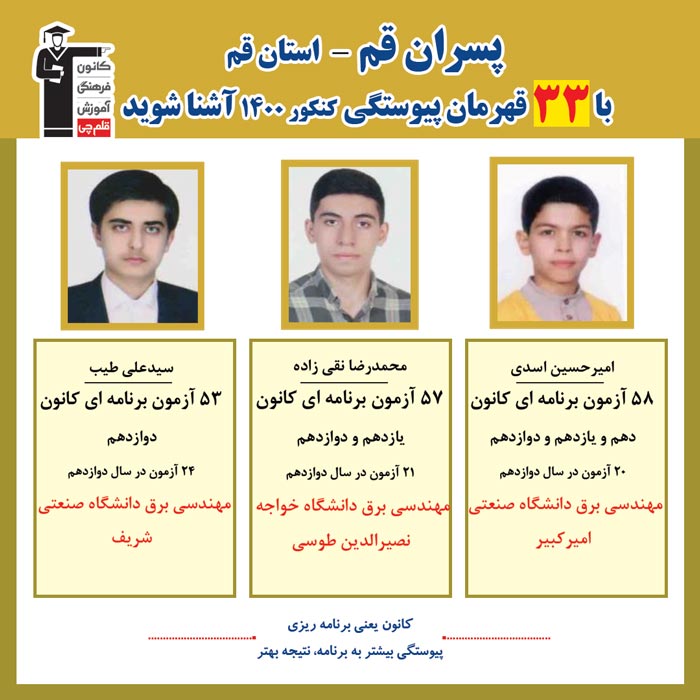 با قهرمانان پیوستگی پسران قم درکنکور 1400 آشنا شوید