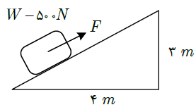 *شکل زیر یک سطح شیبدار را نشان می دهد. حداقل نیروی F لازم برای بالابردن جعبه 500 نیوتونی چند نیوتون است؟ (از اصطکاک صرف نظر می شود) (متوسط/تالیفی)