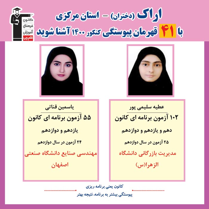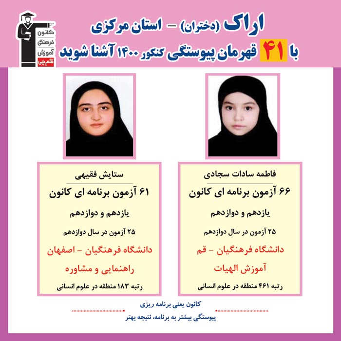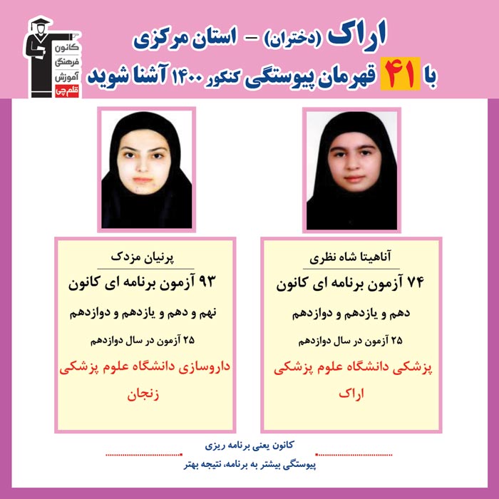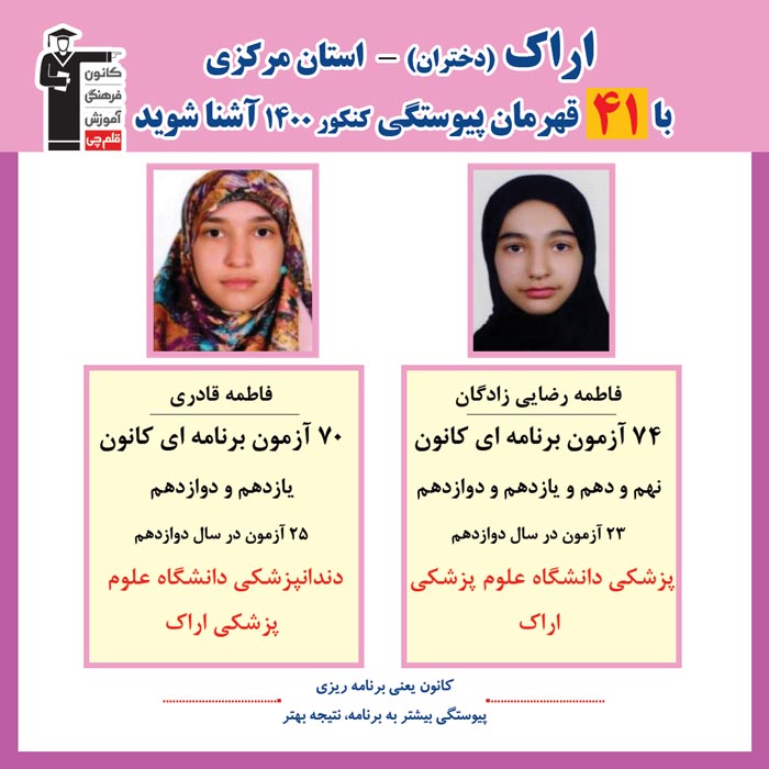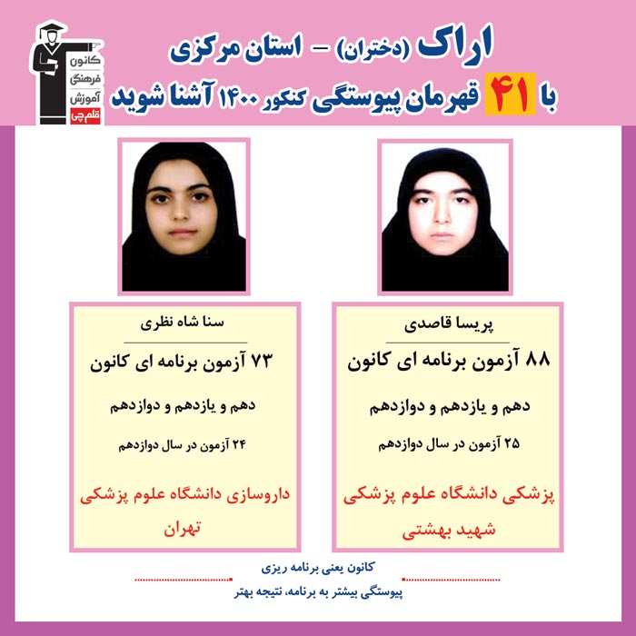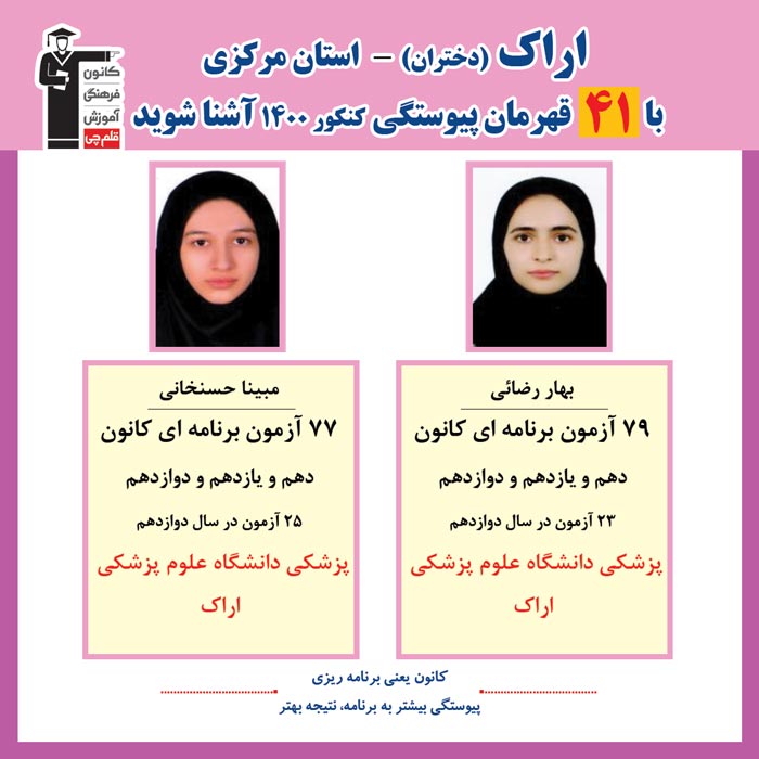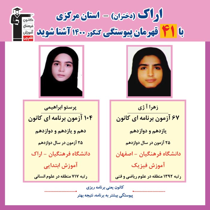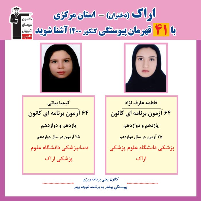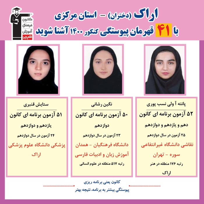 با 41 نفر قهرمانان پیوستگی اراک دختران درکنکور 1400 آشنا شوید