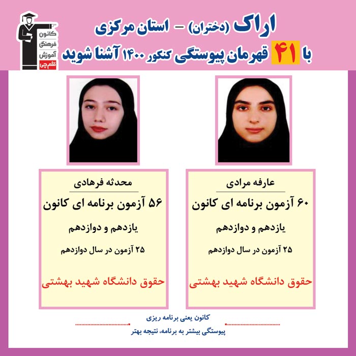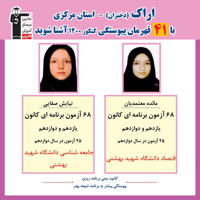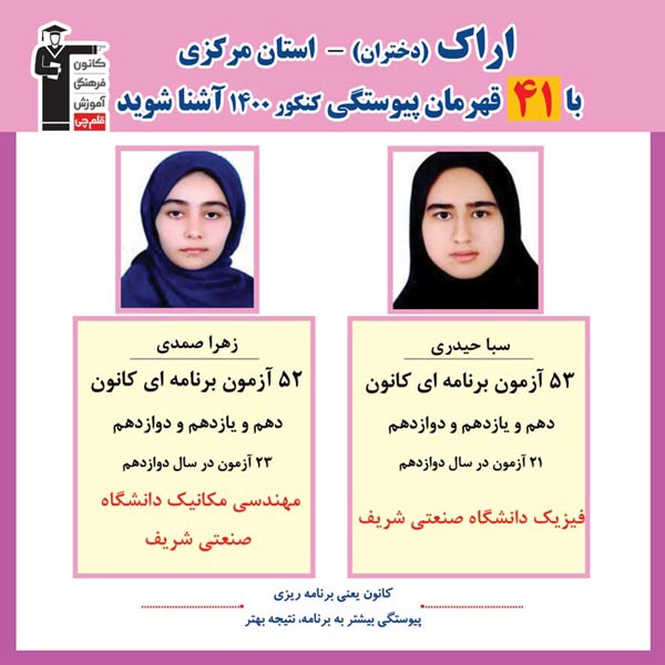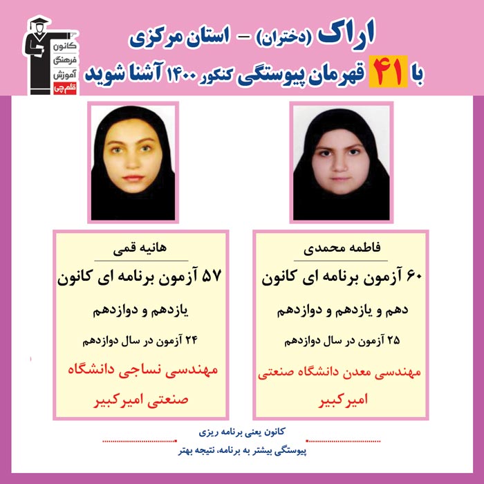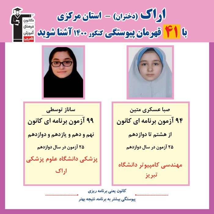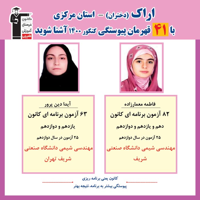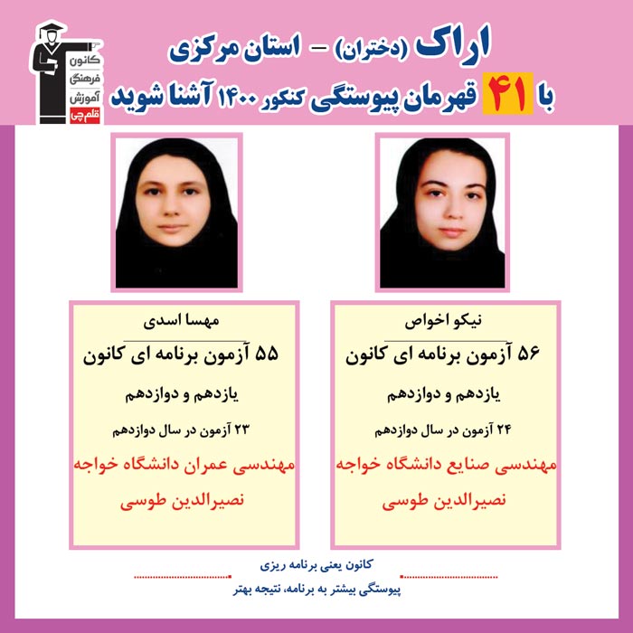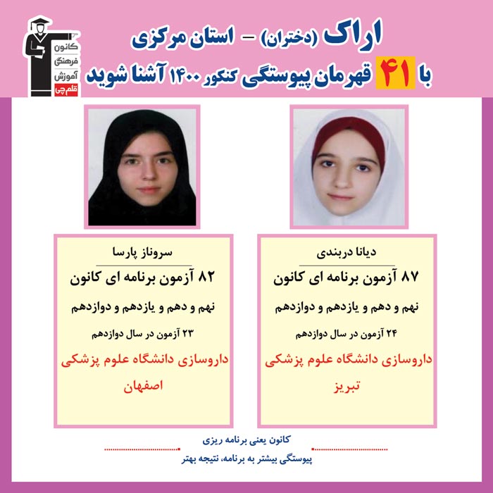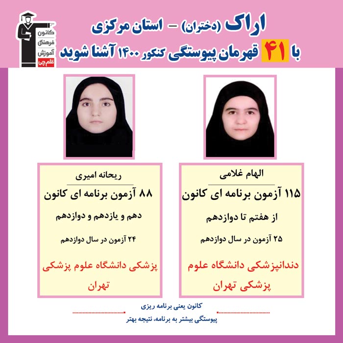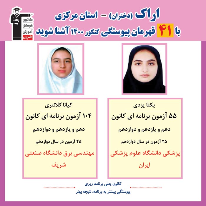 با 41 نفر قهرمانان پیوستگی اراک دختران درکنکور 1400 آشنا شوید