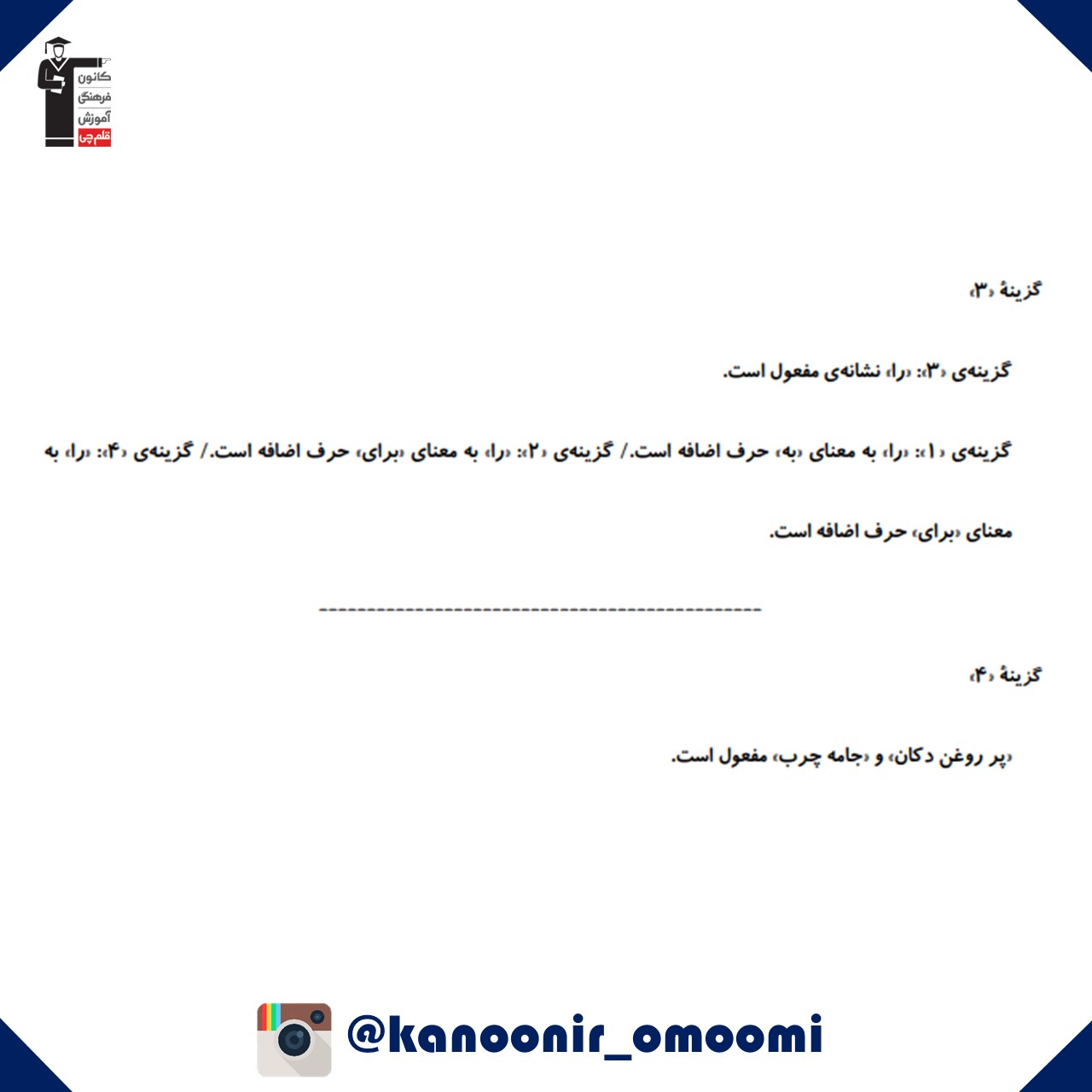 کانونی های عزیز!مطلب زیر شامل چند نمونه سوال تستی از فارسی دهم است.پاسخ تست ها در انتهای مطلب پیوست شده است.برای استفاده از مطالب بیشتر ، صفحه اینستاگرام گروه عمومی کانون را به نشانی kanoonir_omoomi را دنبال کنید.